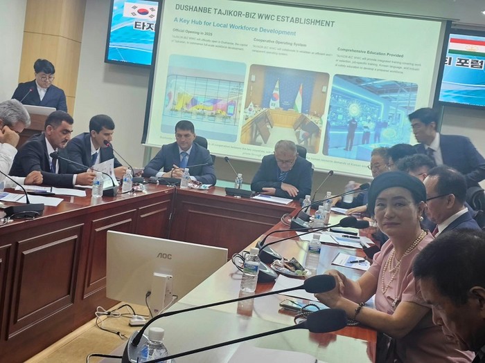 | ▲ 지난 8월 21일 주한 타지키스탄 대사관의 유스프 샤리프조다 대사와 타지키스탄 노동.이주.고용부의 청장, 국제협력국 국장 및 부국장을 포함한 10여명이 넘는 여러 고위급 정부 관계자들이 대거 참석한 가운데 국회 제7간담회의실에서 한-타지키스탄 포럼이 열렸다. 사진 우측 제나 정 (Dr.Zena Chung) 이사장이다. |