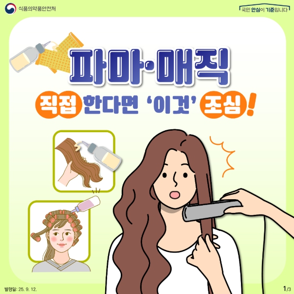 [코리아 이슈저널=김윤영 기자] 식품의약품안전처는 퍼머넌트 웨이브(파마)나 헤어스트레이트너(매직) 제품을 집에서 전문가 도움 없이 사용할 경우 발생할 수 있는 부작용 등 피해를 최소화하기 위해 소비자가 유의하여야 할 사항을 안내한다고 밝혔다.