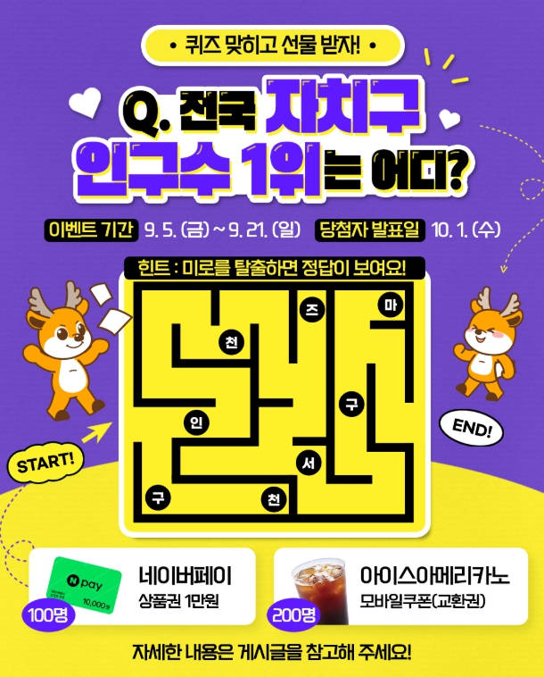 구는 이번 성과를 구민과 함께 기념하고자 ‘인구 1위 달성 축하 퀴즈 이벤트’를 9월 21까지 2주간 진행한다.