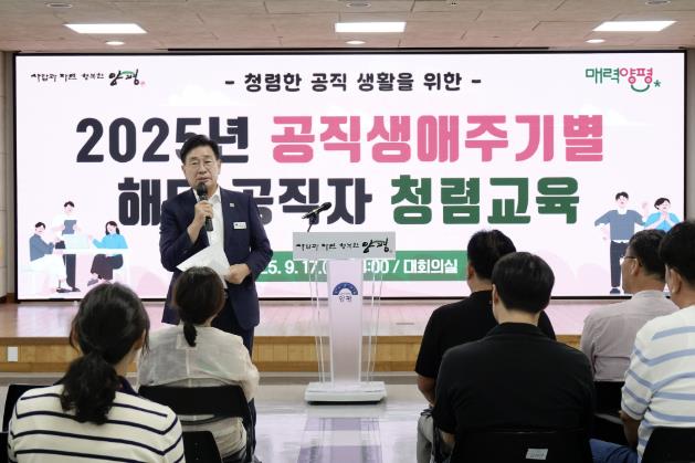 [코리아 이슈저널=홍춘표 기자] 양평군은 지난 17일 군청 대회의실에서 ‘2025년 공직생애주기 공직자 청렴교육’을 실시했다.
