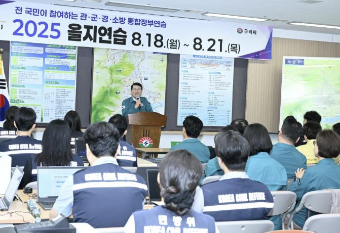 [코리아 이슈저널=홍춘표 기자] 구리시는 8월 18일 오전, 구리시청 1층 종합상황실에서 간부 공무원과 군경, 소방 등 유관기관 관계자 등이 참석한 가운데 2025년 을지연습의 시작을 알리는 최초 상황보고회를 실시했다.