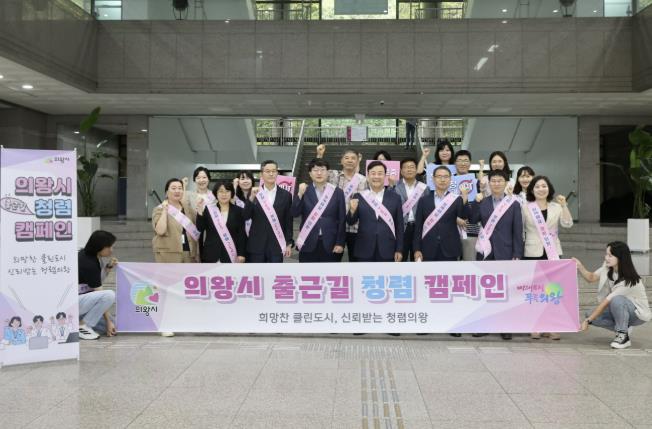 이번 캠페인에는 김성제 의왕시장과 안치권 부시장을 비롯해 4급 이상 간부공무원 및 감사담당관 직원 등 20여 명이 참여했다. 이들은 출근하는 직원들에게 청렴 문구가 새겨진 홍보물을 나눠주며, “오늘도 청렴”이라는 구호를 함께 복창했다.