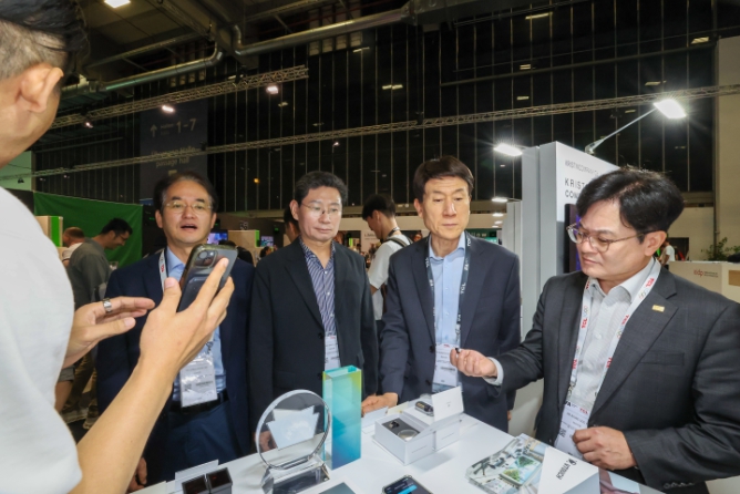 | ▲ 김병수 시장(우측 첫 번째)은 6일 독일 베를린에서 개최되는 세계 최대 가전·IT 전시회(이하 IFA)를 방문해 살펴보고 있다 |