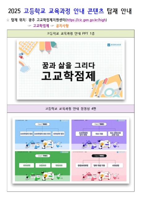 | ▲ 2025 고등학교 교육과정 안내 콘텐츠 탑재 안내문 |