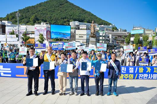 [코리아 이슈저널=김종오 기자] 여수시는 지난 23일 이순신광장 일원에서 민‧관 합동 친절관광 캠페인을 실시했다.