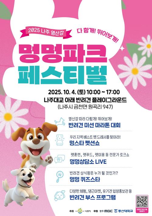 [코리아 이슈저널=김종오 기자] 전라남도 나주시가 반려동물과 시민이 함께하는 책임 있는 반려 문화를 확산하기 위해 ‘2025 영산강 멍멍파크 페스티벌’을 개최한다.