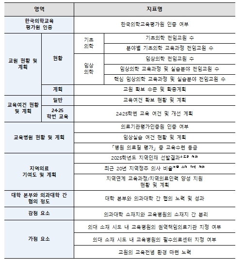 ▲ 의과대학 학생정원 조정 평가지표