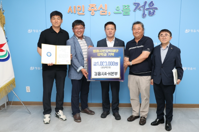 [코리아 이슈저널=김종오 기자] 정읍시4-H본부는 4일 한마음대회에 보내준 지역사회의 성원에 보답하고자 장학금 100만원을 정읍시민장학재단에 기탁하며, 미래세대 인재 육성에 따뜻한 뜻을 전했다.