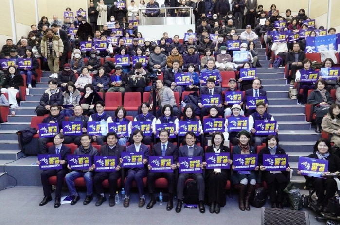 25일, 세종 다정동 복합커뮤니티센터에서 ‘행정수도 완성 추진 보고대회’ 성료...4백 명 이상 계단에 앉고 서고!