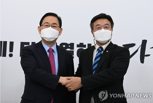 ▲ 주호영 국민의힘 대표 권한대행 겸 원내대표과 윤호중 더불어민주당 비대위원장 겸 원내대표 [출처=연합뉴스]