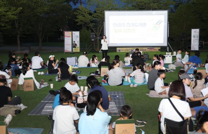 이번 행사는 안성시의 새로운 야간경제 활성화 사업인 ‘안성 밤마실’ 프로그램의 일환으로, 안성미디어센터와 진사도서관이 연계하여 더운 여름밤 도서관 앞 잔디밭에서 온 가족이 함께 즐길 수 있도록 기획됐다.