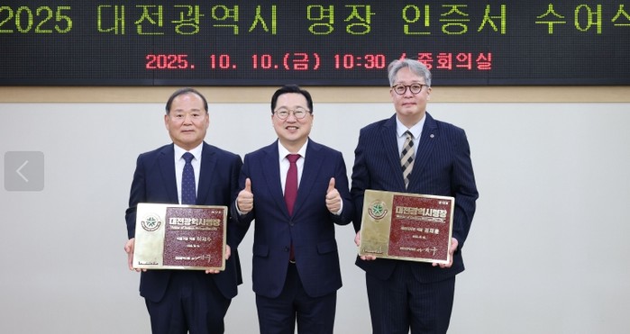 [코리아 이슈저널=홍종수 기자] 대전시는 10일 시청 중회의실에서 2025년‘대전광역시 명장’으로 선정된 2명에게 인증서와 인증패를 수여했다.
