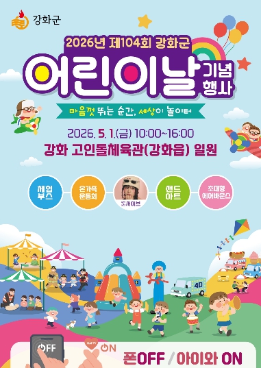 [코리아 이슈저널=김윤영 기자] 강화군은 제104회 어린이날을 맞아 오는 5월 1일 오전 10시부터 강화읍 고인돌체육관에서 어린이날 기념행사를 개최한다.