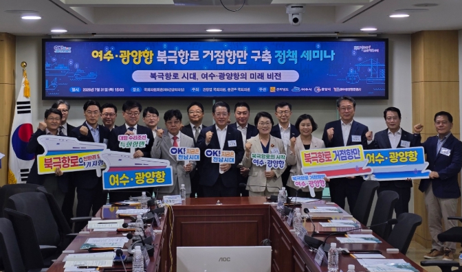 [코리아 이슈저널=김종오 기자] 광양시는 지난 7월 30일 국회의원회관 제6간담회실에서 열린 ‘여수·광양항 북극항로 거점항만 국회 세미나’에 참석해 북극항로 시대를 대비한 광양항의 발전 방안을 논의했다고 밝혔다.