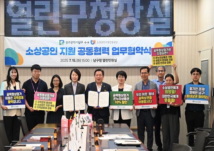 [코리아 이슈저널=김종오 기자] 광주광역시 남구는 관내 소상공인의 경쟁력 강화와 지역경제 활성화를 위해 소상공인시장진흥공단 광주전남제주지역본부와 손잡고 골목형 상점가 및 전통시장 활성화 지원 사업을 공동으로 추진한다.