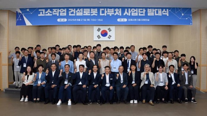 시는 21일, 시청 3층 대회의실에서 정성주 김제시장, 서백현 김제시의회 의장, 신원식 전북도 첨단산업국장, 국토교통과학기술진흥원 박래상 본부장, 서울대학교 안창범 교수, ㈜호룡 박장현 대표이사 등 주요 인사와 관련 기관 · 기업 관계자 80여 명이 참석한 가운데‘고소작업 건설로봇 기술개발 및 실증센터 구축 다부처 사업단 발대식’을 성황리 개최하고, 미래 건설산업 혁신의 첫발을 내디뎠다.