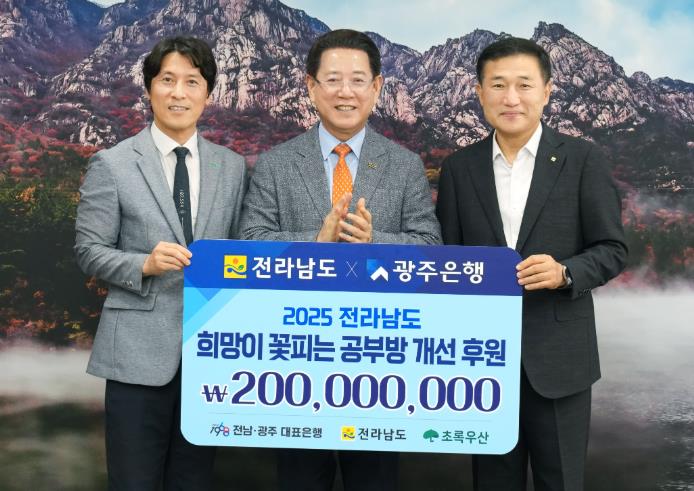 기탁식에는 김영록 전남도지사와 고병일 광주은행장, 김동극 전남사회복지공동모금회 사무처장, 변정근 초록우산어린이재단 광주지역본부장 등이 참석했다.