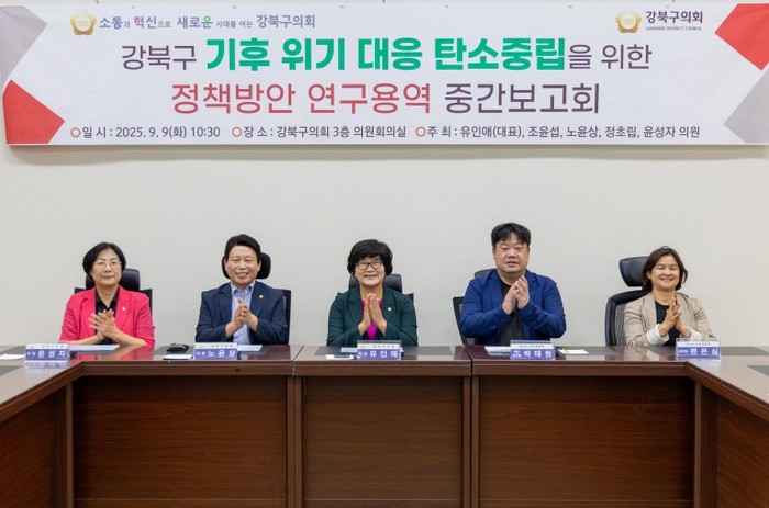 [코리아 이슈저널=홍춘표 기자] 강북구의회 의원연구단체인 ‘강북구 기후위기 대응 탄소중립을 위한 연구회’ (대표의원 유인애)는 지난 9월 9일 의회 3층 의원회의실에서 중간보고회를 열었다.