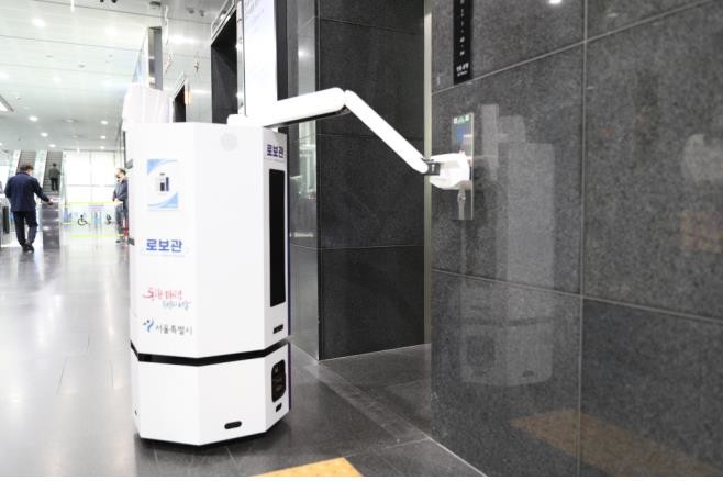 로보관은 이날부터 서울시 본청 곳곳에서 공공문서(소포) 배달 업무와 민원인 안내 등의 업무를 지원한다. 수평 이동을 주로 하는 기존 배송 로봇과 달리 스스로 엘리베이터를 타고 각 층을 이동하는 점이 특징이다. 로봇손을 활용해 엘리베이터 버튼도 직접 누른다.