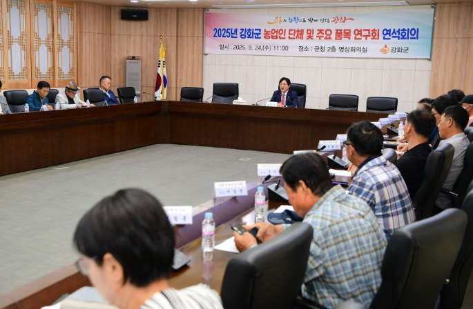 [코리아 이슈저널=홍춘표 기자] 강화군은 지난 24일 관내 농업인 단체장과 주요 품목 연구회 대표들과 함께 연석회의를 열고, 가을철 수확기를 맞은 농산물의 고품질 유지와 농업 발전 방안을 모색했다.