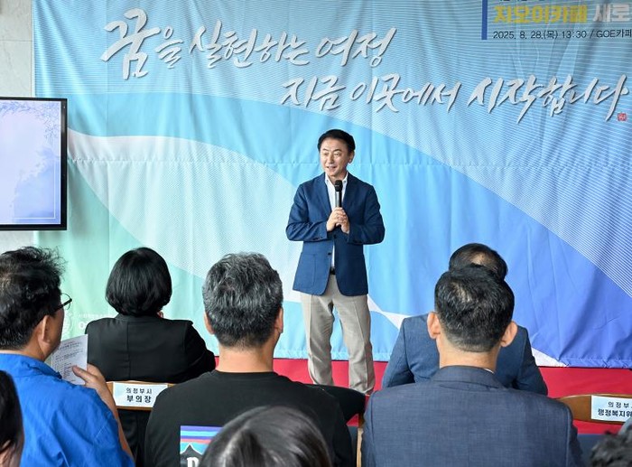 | ▲ 김동근 시장이 8월 28일 ‘지오이카페’ 개소식에서 인사말을 하고 있다. |