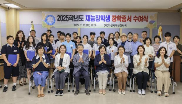 [코리아 이슈저널=홍춘표 기자] 과천시 애향장학회는 지난 15일 시의회 1층 열린강좌실에서 ‘2025년 재능 장학생 장학증서 수여식’을 열고, 관내 중고등학생 24명과 단체 2팀에 총 3,550만 원의 장학금을 전달했다.