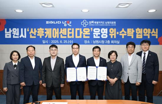 [코리아 이슈저널=김종오 기자] 남원시는 산후조리원의 효율적인 운영과 활성화를 위하여 남원의료원과 ‘남원시 공공산후조리원 운영 위수탁 협약’을 2025년 6월 25일 시청 회의실에서 체결했다.