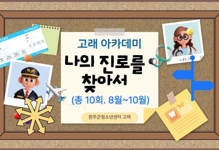 [코리아 이슈저널=김종오 기자] 완주군청소년센터 ‘고래’가 오는 8월 2일부터 10월까지 청소년 진로탐색 활동 ‘고래 아카데미–나의 진로를 찾아서’를 총 10회기 운영한다.