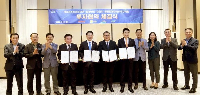 [코리아 이슈저널=김종오 기자] 광양만권경제자유구역청은 9월 30일 서울 여의도 페어몬트 앰배서더 호텔에서 글로벌 유통기업 코스트코와 투자협약(MOU)을 체결했다고 밝혔다.