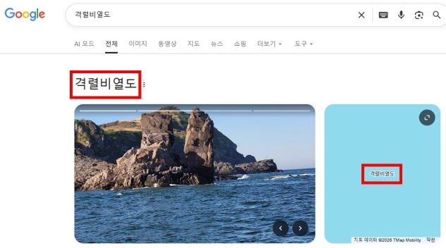 이전까지 ‘ 격렬비열도 ’ 를 구글 검색창에 입력하면 ‘ 공녈비 - 열도 ’ 라는 잘못된 결과가 검색되는 오류가 있었다 . 격렬비열도는 행정구역상 태안군 근흥면 가의도리에 속한다 .