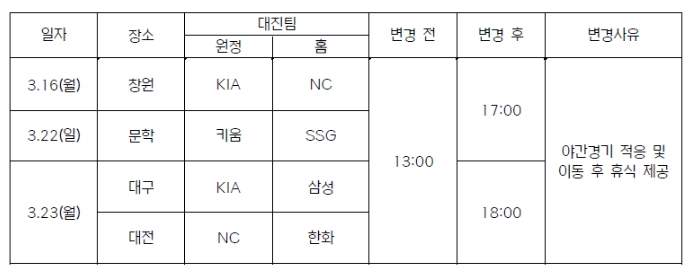 KBO 시범경기 개시 시간 변경