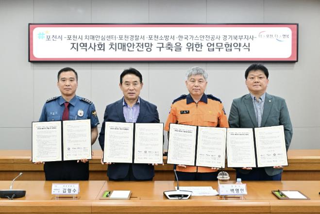 [코리아 이슈저널=홍춘표 기자] 포천시는 지난 18일 ‘지역사회 치매안전망 구축’을 위해 포천경찰서를 비롯한 4개 기관과 업무협약을 체결했다.