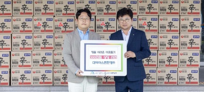 홍경덕 대덕아스콘환경(주) 대표는 “작은 정성이지만 어려운 이웃들이 따뜻한 명절을 보내길 바란다”며 “앞으로도 지역 주민과 함께 상생하며 신뢰받는 기업이 되도록 노력하겠다”고 말했다.