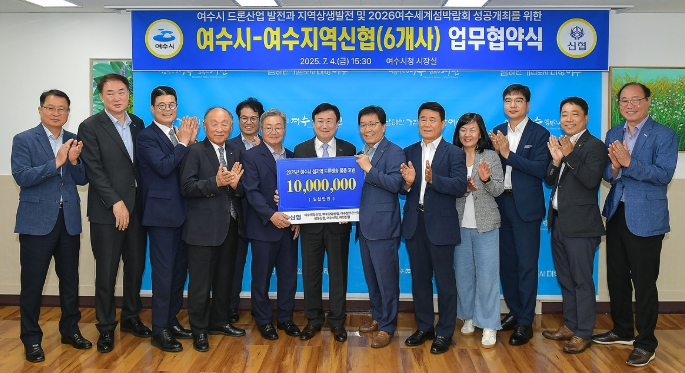 [코리아 이슈저널=김종오 기자] 여수시는 지난 4일 지역 신협 6개 사와 ‘여수시 드론 산업 발전과 지역 상생 발전 및 2026여수세계섬박람회 성공개최를 위한 업무협약’을 체결했다.