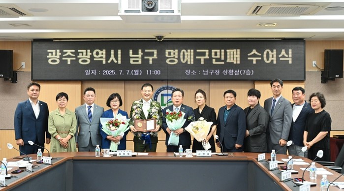 7일 남구에 따르면 남구 명예 구민패 전달식이 이날 오전 구청 7층 상황실에서 열렸다.