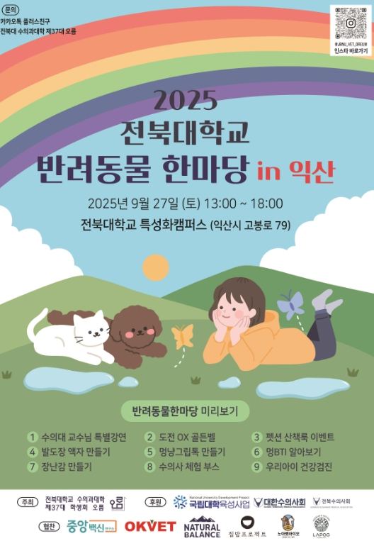 오는 27일 '2025 전북대학교 반려동물 한마당 in 익산' 개최 -