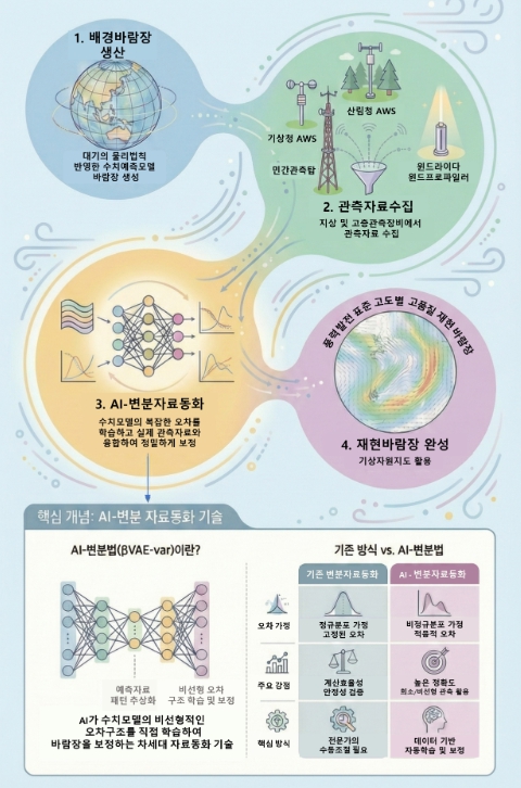 | ▲ AI-변분 자료동화 기반의 재현바람장 생산 개념도 |