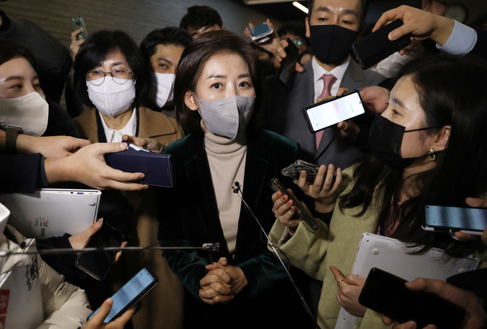 | ▲ 전당대회 출마 여부를 고심중인 국민의힘 나경원 전 의원이 11일 오후 서울 여의도 국민의힘 중앙당사에서 열린 국민의힘 서울시당 신년인사회를 마치고 나서며 취재진의 질문에 답변하고 있다. 2023.1.11 [국회사진기자단] |
