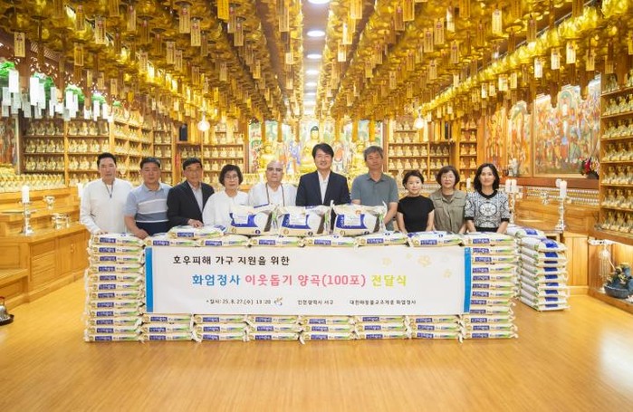 [코리아 이슈저널=홍춘표 기자] 인천 서구는 27일, 화엄정사가 양곡 100포를 기부했다고 28일 밝혔다. 이날 전달받은 양곡은 호우 피해를 입은 관내 취약계층 대상자에게 전달될 예정이다.