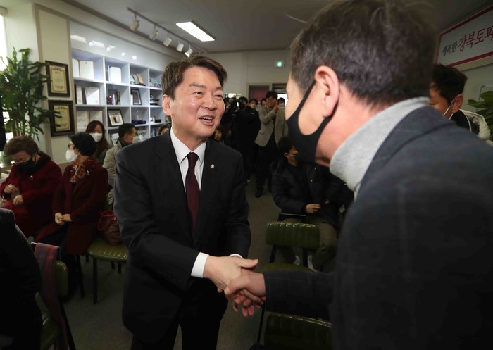 | ▲ 국민의힘 안철수 의원이 1일 대구 북구을 당협을 찾아 당원들과 간담회에 앞서 인사를 하고 있다. 2023.2.1 |
