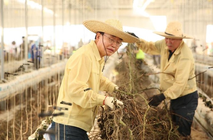 ▲ 나주시가 ‘7월 호우 피해’를 입은 세대에 재난지원금 지급을 완료했다. 사진은 윤병태 나주시장이 집중호우로 피해를 입은 농가에서 복구 작업을 돕고 있는 모습.