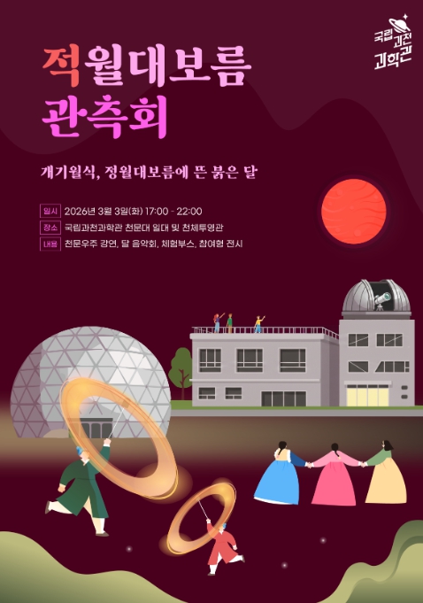 [코리아 이슈저널=최용달 기자] 과학기술정보통신부 국립과천과학관은 정월대보름인 2026년 3월 3일, 천문대와 천체투영관 일대에서 개기월식 특별 관측회를 연다.