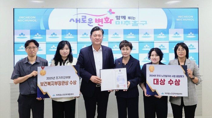 [코리아 이슈저널=홍춘표 기자] 인천 미추홀노인인력개발센터(센터장 김태화)는 지난 22일 웨스턴조선서울에서 열린 ‘2025년 노인 일자리 주간 기념식’에서 보건복지부 장관 표창이자 최고 영예인 ‘대상’을 수상했다.