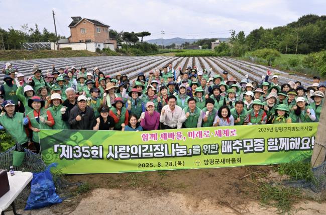[코리아 이슈저널=홍춘표 기자] 양평군새마을회는 지난 28일 양평읍 회현리 일원에서 회원 80여 명과 함께 ‘사랑의 김장나누기’ 행사를 위한 배추 모종 심기 행사를 개최했다.