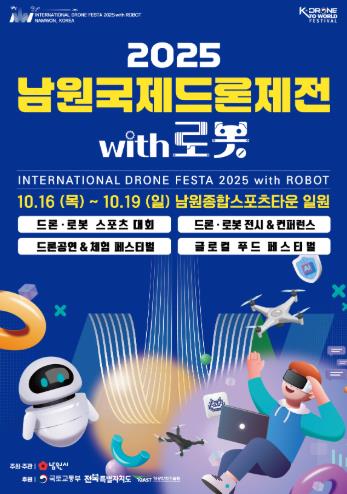 남원시는 오는 10월 16일부터 19일까지 4일간, 남원종합스포츠타운 일원에서 『2025 남원국제드론제전 with 로봇』을 개최하며 세계 드론·로봇 산업의 중심 무대로 거듭날 계획이다.