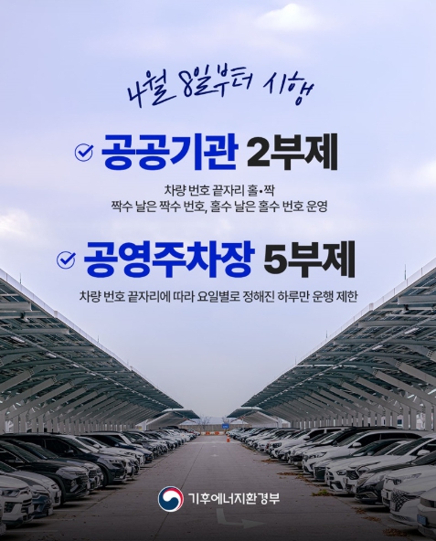 기후에너지환경부, 4월 8일부터, 공공기관 2부제·공영주차장 5부제 시행
