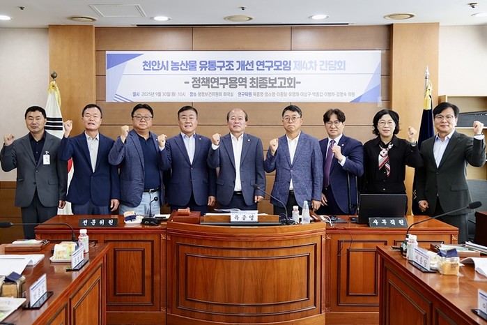 [코리아 이슈저널=홍춘표 기자] 천안시의회 농산물 유통구조 개선 연구모임이 9월 30일 오전 10시 의회 행정보건위원회 회의실에서 7개월간의 연구 성과를 담은 최종보고회를 개최했다.
