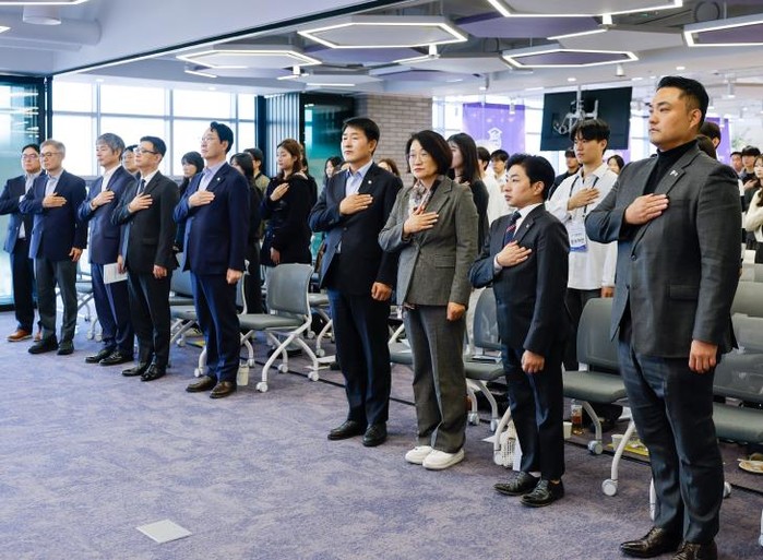 | ▲ 테크노폴 수료회 참석 시의원 국민의례 모습 |