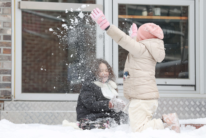 [열린의정뉴스 = 김윤영 기자] 전국 곳곳에 눈이 내린 26일 서울 용산구 이태원동에서 어린이들이 눈을 뿌리며 즐거운 시간을 보내고 있다. 2023.1.26