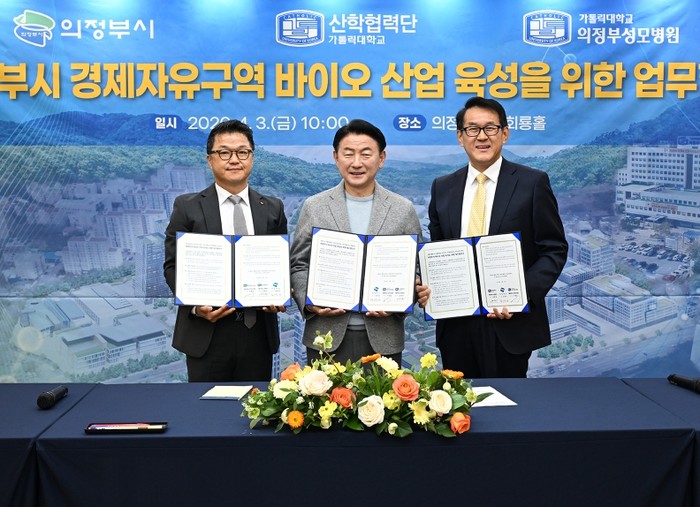 [코리아 이슈저널=홍춘표 기자] 의정부시는 4월 3일 시청 회룡홀에서 가톨릭대학교 의정부성모병원, 가톨릭대학교 산학협력단과 함께 ‘의정부시 경제자유구역 바이오 산업 육성을 위한 업무협약’을 체결했다.